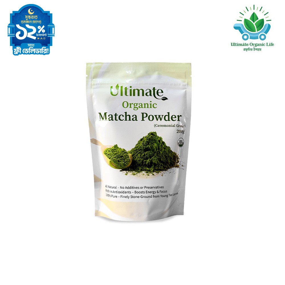 আল্টিমেট অর্গানিক Matcha Powder শতভাগ অর্গানিক পদ্ধতিতে উৎপাদিত, USDA সার্টিফায়েড এক ধরনের বিশেষ সুপারফুড। প্রিমিয়াম কোয়ালিটির জাপানিজ-স্টাইল মাচা পাউডারে সাধারণ গ্রিন টির তুলনায় প্রায় ১০ গুণ বেশি অ্যান্টিঅক্সিডেন্ট থাকায় শরীরকে প্রাকৃতিকভাবে ডিটক্স করতে সহায়তা করে এবং দীর্ঘমেয়াদি সুস্থতা ও এনার্জি ধরে রাখতে গুরুত্বপূর্ণ ভূমিকা রাখে।